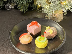 和菓子で作る、クリスマス仕様のかわいい上生菓子です。