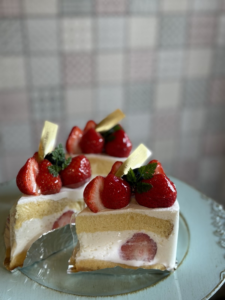和三盆を使用した口どけの良いスポンジと、生乳の美味しさを凝縮した特別な生クリーム「ソワニテ」を使用した濃厚な生クリームに、苺の王様「あまおう」をふんだんに使用したシェフこだわりの贅沢なショートケーキ。